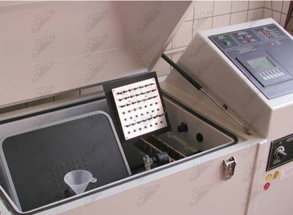 Technické řešení se týká držáku pro zlepšené a zrychlené nasazování a vyjímání zkušebních vzorků umísťovaných do prostoru korozních zkušebních komor se všemi typy zkušebních korozních atmosfér, např. neutrální solná mlha, čistá kondenzace vodních par, kondenzace vodních par s obsahem SO2 a další.